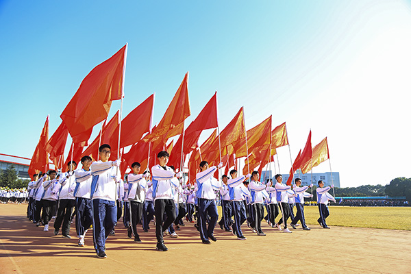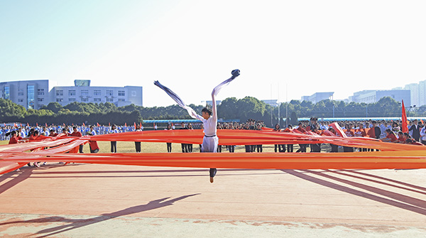 庄严的升旗仪式后,校党委副书记林长兴致开幕辞。他代表全校师生员工向本届运动会的举行表示祝贺。他强调,本届田径运动会是学校贯彻学生全面发展教育思想的重要载体,是校园体育文化建设的一项重要活动,是对学校体育工作成果的一次大检阅,更是全体师生精神风貌的一次全面展示。他结合本届运动会“运动、健康、快乐”的主题,代表组委会对本届运动会提出了希望和要求:一是全体运动员要遵守比赛规则,服从裁判,尊重对手,在竞赛中奋勇拼搏、敢于争先;二是全体教练员、裁判员和工作人员要恪守“公开、公平、公正”的竞赛准则,忠于职守、严明纪律、一丝不苟地做好各项赛事组织工作;三是全体师生要牢固树立“安全第一”的思想,把安全文化融入到运动会的各个环节中去,文明参赛、文明观赛,维持良好的大会秩序。他希望全体师生秉承和发扬“自信、专注”的校训和“百折不挠、超越自我、不断追求崇高目标”的学校精神,奋力拼搏,争创一流的运动佳绩,将本届运动会办成文明、热烈、精彩而又令人难忘的体育盛会。