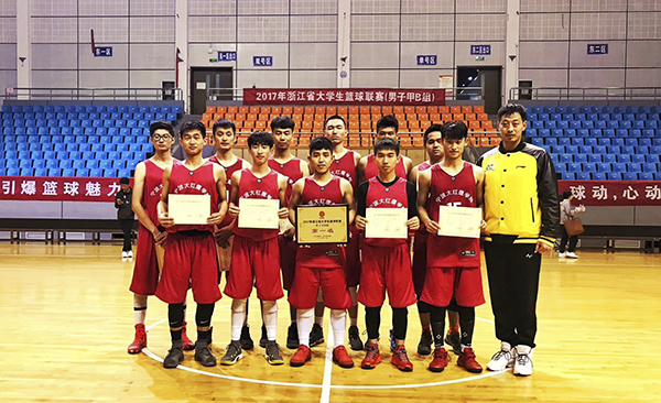 11月12日,2017年省大学生篮球联赛(ZUBA)男子甲B组比赛决赛火热打响,我校柴春涛老师指导,刘皓哲、杨昊宇、项顺、孙丹枫等同学组成的男子篮球队发挥出色,最终以62:53的成绩击败对手,以保持八场全胜骄人战绩,一举夺得甲B组冠军。同时,柴春涛老师被评为优秀教练员,刘皓哲、杨昊宇同学被评为优秀运动员。