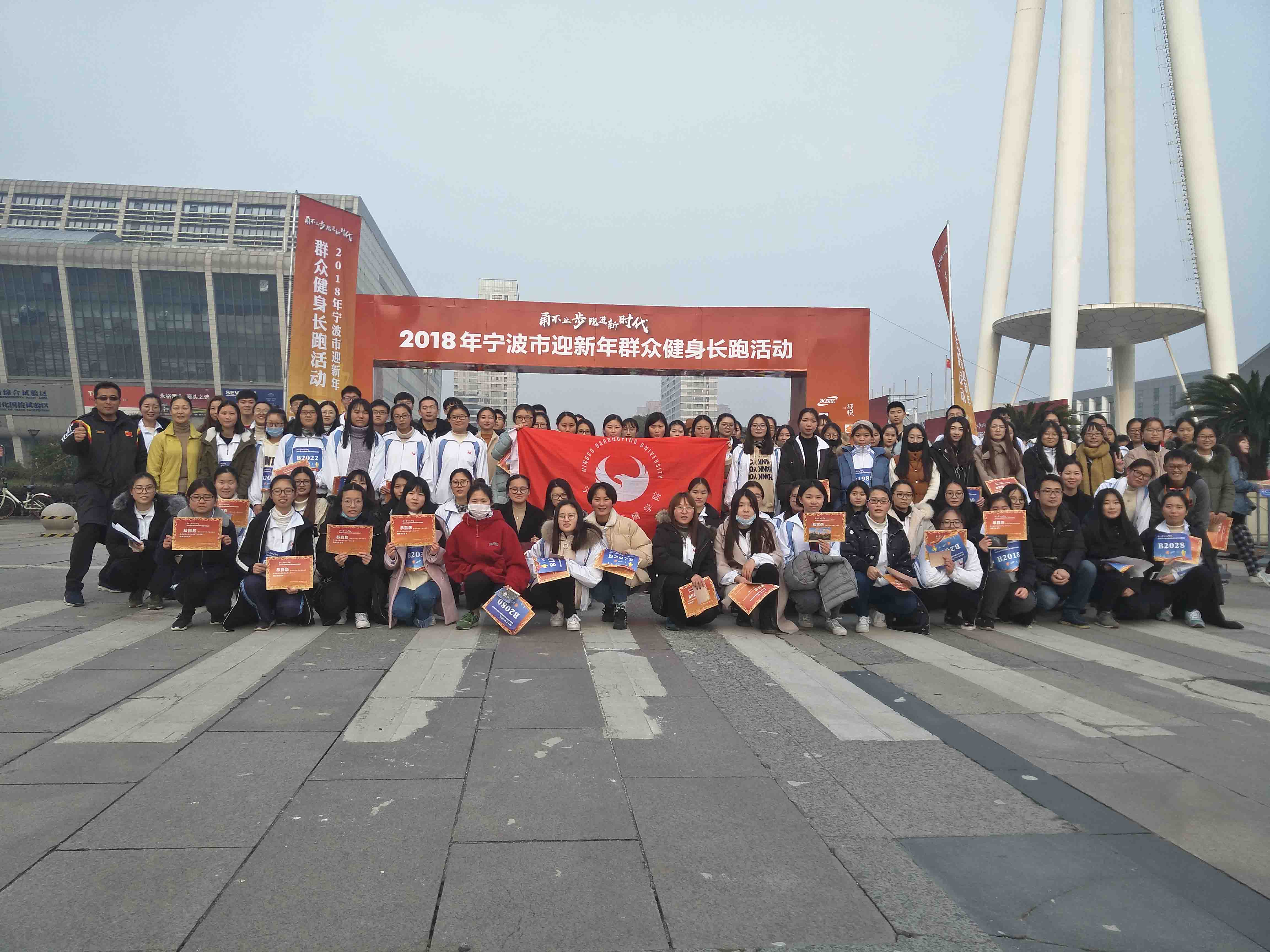 元月1号清晨,由我校公共文体部马丽芳、邢立付老师带领财富学院100名学生迎着新年的第一缕阳光参加了我市一年一度的元旦万人健身长跑活动,本次活动在东部新城的宁波国际会展中心隆重举行。