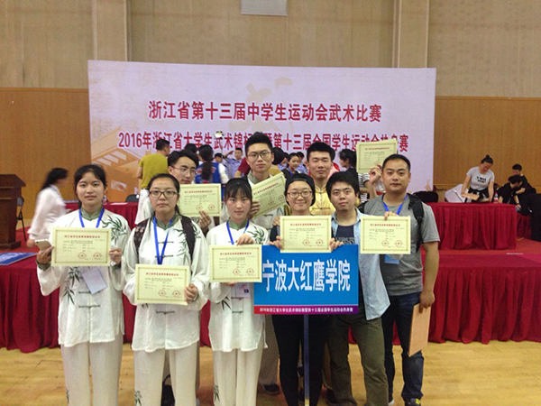 5月13日-15日,2016年浙江省大学生武术锦标赛暨第十三届全国学生运动会热身赛在浙江中医药大学滨江校区举行。由我校公共体育部贾鹏飞、何青山老师共同带领的大学生武术队在比赛中脱颖而出,取得优异成绩