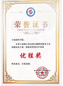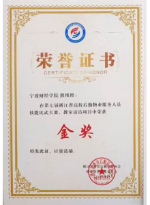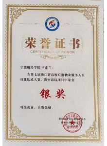 熊艳艳、卢素兰在第七届浙江省高校后勤物业服务人员技能比武大赛中分别荣获金奖、银奖,后勤管理处荣获团体优胜奖。
