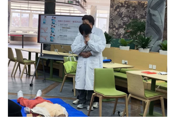 此次演练以“理论讲解+实操演示”相结合的方式有序进行,校医务室金明泽医生系统讲解了心肺复苏的原理、适用场景与关键操作步骤,并着重介绍了自动体外除颤器(AED)的存放位置、规范操作流程及使用注意事项。针对餐饮服务过程中易发生的气道异物梗阻突发情况,医护人员还分类演示了适用于成人、儿童及婴幼儿的海姆立克急救法操作要领。
