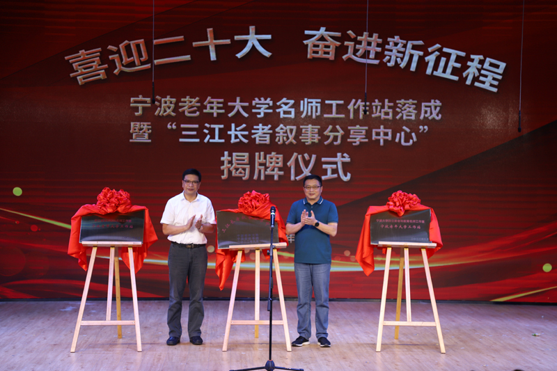 9月29日下午,我校与宁波老年大学合作揭牌仪式在宁波老年大学报告厅举行。“浙江省姜帆思政名师工作室宁波老年大学工作站”和“三江长者叙事分享中心”正式揭牌落地。校党委书记周波,市委老干部局副局长、二级巡视员、宁波老年大学主持工作副校长张晖等领导出席仪式活动并为牌匾揭牌。老年大学及我校师生代表等参加活动。