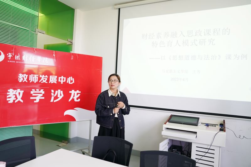 4月27日中午,第171期教学创新主题沙龙“财经素养融入思政课程的特色育人模式研究——以《思想道德与法治》课为例”在数智课堂实验区312开展,沙龙由马克思主义学院“思行慧心”教学团队王芳老师主讲,采用线上线下结合的方式,参会教师达百余人。本次沙龙由教务处副处长朱凤梅担任主持。