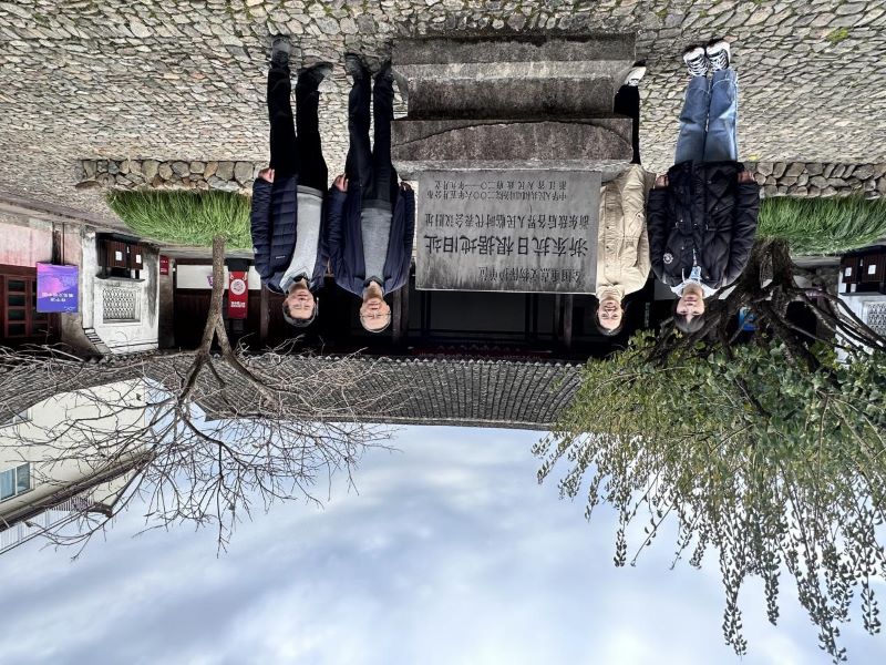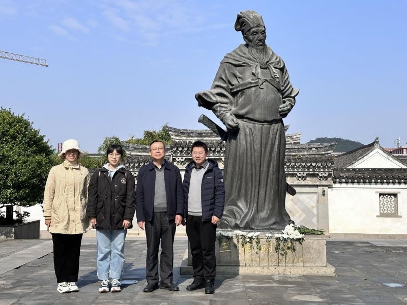 座谈会后,徐国利教授与中国传统文化教研室陈名扬博士以及两位学生代表一同前往“心学圣地”阳明故里余姚市,考察调研余姚市区阳明文化传承转化利用工作,并到梁弄浙东四明山抗日根据地调研宁波红色文化,最后与宁财师生代表一同瞻仰了四明山革命烈士纪念碑。