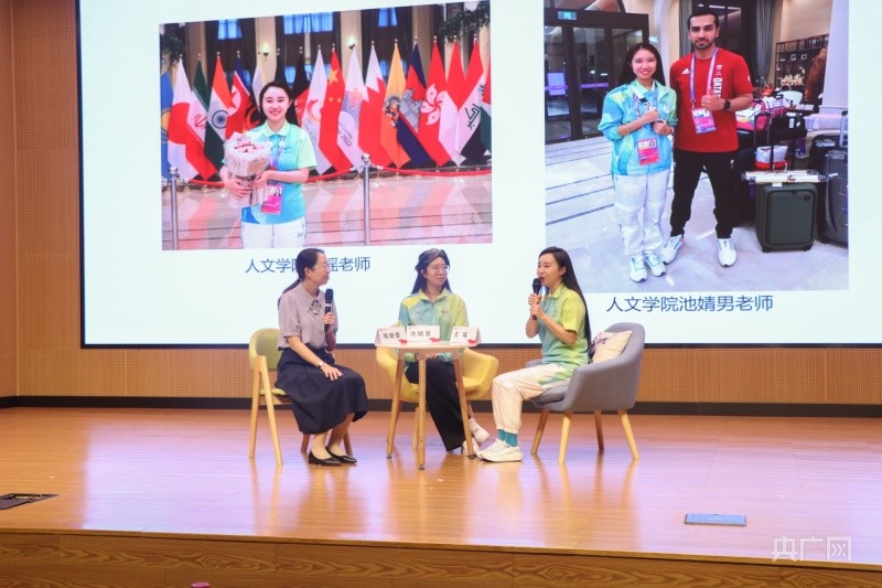 “亚运不仅仅只是一次志愿服务经历,更是将个人’小我‘与国家和民族自豪感紧密相连的一次相约。”潘美霖和蓝梦吉分享了自己在亚运会不同岗位上的志愿服务心得,娓娓讲述了在亚运村的生活点滴。“有学业上的压力,也有训练上的酸甜苦辣,但更多的是受到肯定的快乐和服务亚运的骄傲。”
