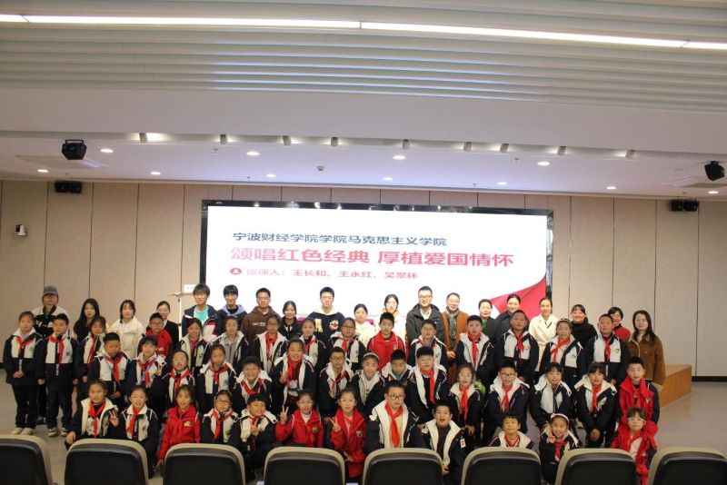2024年11月28日下午两点,来自庵东中心小学的四十多名师生代表来到宁波财经学院杭州湾校区科创大楼,与等候多时的宁波财经学院师生代表共同上了一堂思政课。本次思政课授课主题为:颂唱红色经典,厚植爱国情怀。出席的大学生代表有美好生活学院特色班学员、思政课课代表等。