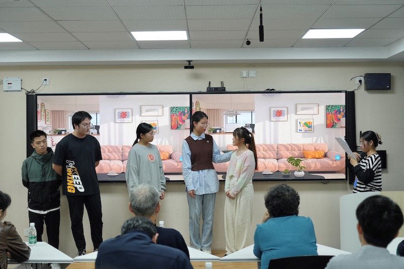“我们设计了‘时空穿越’情节,让‘女儿’角色穿越至‘妈妈’童年的家庭生活中,巧妙地展示了两个时代在面对一系列相似事件时所采取的不同处理方式。”该心理剧的编剧大三学生方艺睿说,有点像电影《你好,李焕英》里面的设定,这种设定可以以更为直观的方式,凸显不同年代家庭教育理念的差异。