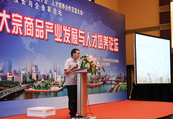 纪鸿聪先生在题为《大宗商品业态特点分析与人才培养》主题报告中讲述了自身的学习成长经历,总结了职业发展成功经验和教训,并为大宗商品专业人才的培养提供了一定的借鉴依据。随后,他详细阐述了大宗商品的基本业态属性,同时从行业的角度提出了大宗商品人才培养的基本思路,并对人才培养过程中不同年级课程安排的侧重点做了清晰的规划。