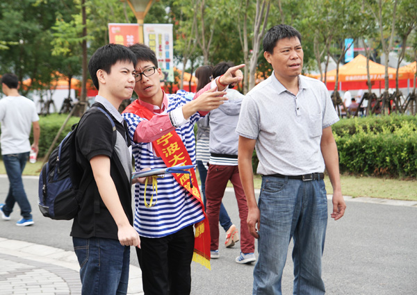 当天下午1:30召开的新生家长会,更是今年迎新工作的一大亮点。家长会上,校党委副书记林长兴在教学楼报告厅为到场的新生及家长详细介绍了我校的总体概况、办学历程、文化传统以及发展愿景等。之后,基础学院院长王勇对杭州湾校区的基本情况作了简要介绍。出席会议的领导、老师还与到场的家长进行了互动交流。家长们带着满意的笑容走出了报告厅,大家对学校的迎新工作赞不绝口。
