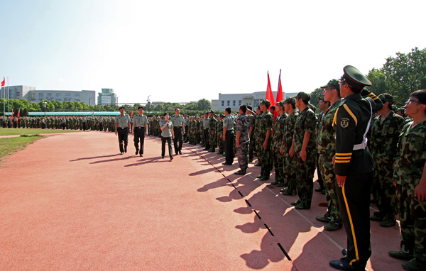 升旗仪式后,阅兵式正式开始。校党委书记孙惠敏在副书记林长兴、副校长李羽陪同下首先对军训师进行了检阅。随后,在雄壮的解放军进行曲中军训师进行了分列式表演,各方队激情高亢的口号、整齐划一的步伐、昂扬向上的军容赢得了在场领导和师生的阵阵掌声。