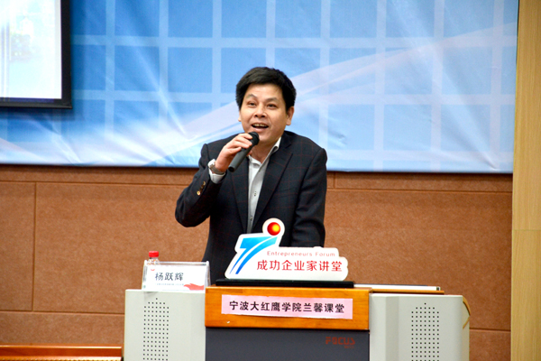 3月19日晚,宁波维科投资发展有限公司总经理杨跃辉走进“成功企业家讲堂”,为我校师生讲授创业与人生的经验与感悟、传授职场挑战秘方。
