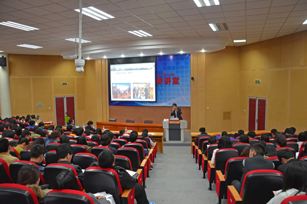 当晚,阶梯教室203座无虚席。杨跃辉总经理以“维科的电子商务”为题,从企业的发展历史讲述自身的创业感悟,从企业的人才需求分析人才培养的方向。谈起维科的发展历史,杨跃辉总经理如数家珍:从1905年开始的宁波和丰纺织工厂到产业重组、成立宁波维科集团股份有限公司;从制度改革再到实行股份员工所有制制度。他认为,企业的发展伴随着无数的竞争,只有不断的学习与创新才能在竞争中立于不败之地。与此同时,他鼓励广大同学发奋图强、再接再厉,不断提高自身的学习能力和创新能力。