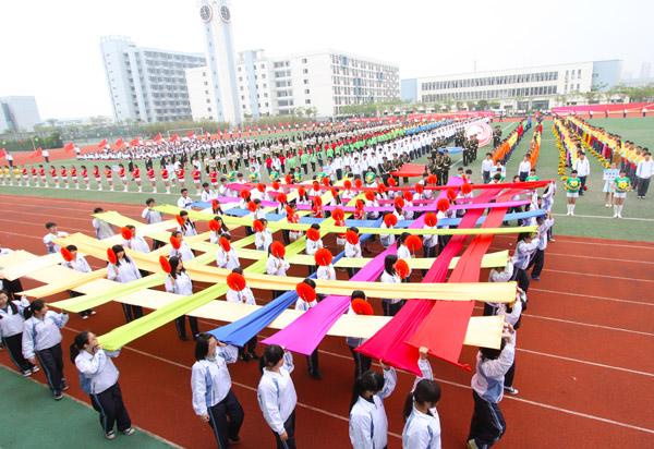 升旗仪式后,校长助理何秋叶致开幕词。她说,本届运动会是落实学校素质教育工作目标的具体行动之一,是我校“参与型”学生教育管理模式的又一次全面展示。她希望全体运动员顽强拼搏、文明参与、赛出风格、赛出水平,全体裁判员忠于职守、严守规则、公正裁判、热情服务,全体师生和志愿者文明观赛、热情服务,为运动员加油喝彩。她预祝本届运动会取得比赛成绩和文明风尚的双丰收。