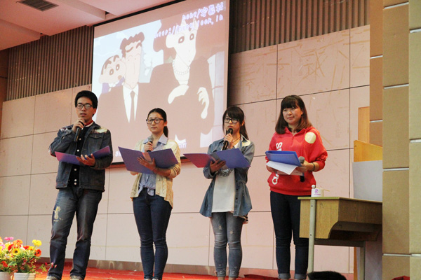 5月10日下午,“卡西欧杯”宁波市高校第一届日语配音大赛在我校信息楼报告厅举行。出席大赛的嘉宾有宁波市教育学会日语协会分会会长张正军、日兴(宁波)电机有限公司总经理道上功、宁波爱心日本语学校校长马光超,卡西欧(中国)贸易有限公司、宁波纷享软件科技有限公司、宁波万马奔腾文化传播有限公司代表等。