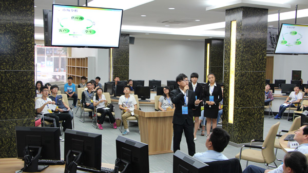 5月24日上午,国泰安创业学院全体学生在学院创业就业实训中心举行了一场别开生面的创业模拟路演活动。国泰安信息技术有限公司执行总裁、中国教育创新研究院副院长王春雷,宁波石城金投资管理服务有限公司董事长邓建军作为嘉宾亲临会场观摩并指导。