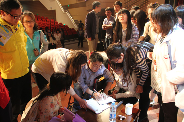4月26、27日,河南省优秀大学生、全国大学生自强之星、FPA中国性格色彩培训中心认证演讲师、北京卫视《我是演说家》四强选手李帅先生做客我校“与人生对话”社会精英访谈节目,连续两天为该校本部校区、杭州湾校区师生做了题为《谁说我们做不到》的演讲。