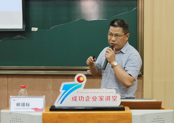 6月12日下午,我校“成功企业家讲堂”第四十六讲在阶梯教室202室举行。宁波沃邦信息技术有限公司副总经理柳锦标先生做客讲堂,以“当互联网+邂逅工业4.0 我们该如何生存”为题,与广大同学分享了他对于这个话题的观点和看法,为同学们创业就业答疑解惑。
