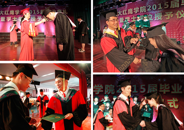 6月18日、19日,我校2015届本科毕业典礼暨学士学位授予仪式在学生活动中心五楼隆重举行。会场两侧的红色条幅“自信开启成功之路,专注铸就精彩人生”、“百折不挠,超越自我,不断追求崇高目标”高高悬挂,映衬着2015届毕业生们一张张朝气蓬勃的笑脸,整个会场洋溢着浓浓的喜悦。