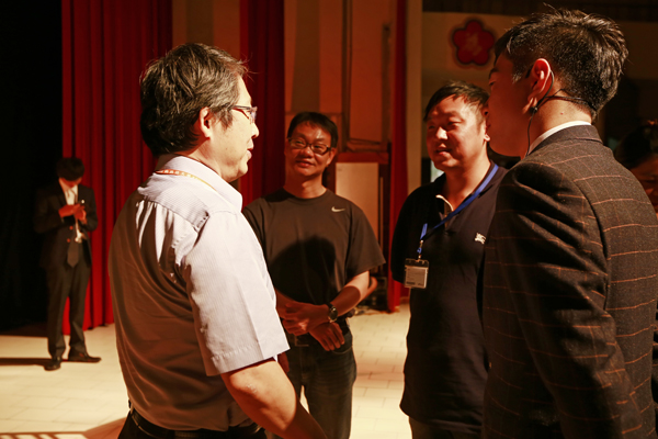 6月15日、16日晚上,《我们的小镇》分别在昆山科技大学和南台科技大学上演,6月18日下午,最后一场演出在龙华科技大学演艺大厅顺利落幕。在演出的过程中,一切的细节都如同事先多次排练一般,有章法且不失艺术趣味。学生们扎实的功底、亮丽的服饰、饱满的真情,给三所高校的观众带来了出乎意料的喜悦,也为话剧团演员赢得热烈而经久不息的掌声。演出结束后,师生观众热情地走到台上与我校师生进行交流并合影留念。龙华科技大学学生事务长王延年博士感动的竖起大拇指说:“太完美了,我们的学生要向你们的话剧团学生学习,欢迎下次再来演出!