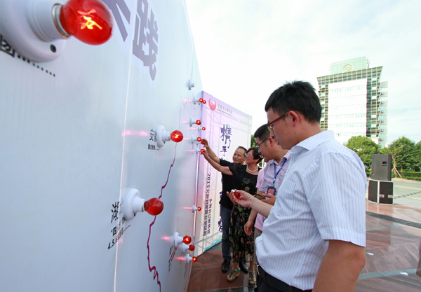 本次出征仪式还增设了一个特别环节。在暑期社会实践路线图大喷绘上,每个实践地都安装了一个灯泡。当在场领导们点亮灯泡时,象征着今年的暑期社会实践活动出征。最后在全体实践团的摇旗呐喊声中,伴随着《年轻的战场》激扬的乐曲,我校大学生暑期社会实践活动全面启动。