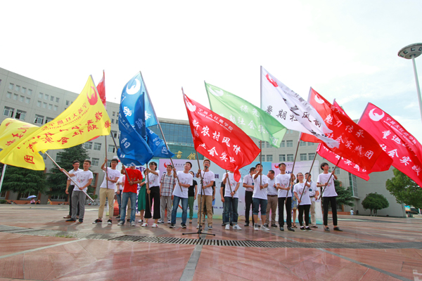 6月25日下午,我校以“激扬逐梦青春路,携手描绘强国梦”为主题的2015年大学生暑期社会实践出征仪式在图书馆喷泉广场举行。校长助理何秋叶出席并讲话,党委宣传部、教务处、学工部、科研处、校团委、各分院党委负责人以及校暑期社会实践重点团队代表等参加了仪式。
