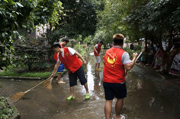 短短的2个小时,一堆堆折断的树枝整齐的堆放在路边,散落在水滩中的树叶一捧又一捧被清理,他们用实际行动证明着:这是一支召之即来、来之能战、战之必胜的靠得住的学生队伍。