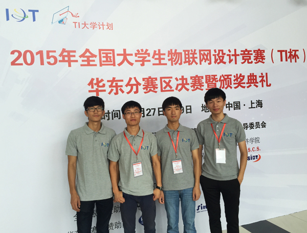 日前,由教育部高等学校计算机类专业教学指导委员会、全国大学生物联网设计竞赛组委会主办的2015年全国大学生物联网设计竞赛(华东赛区)比赛在杭州落幕,我校由李晓蕾老师指导,杨伟佳、叶程伟、洪晨港、赵鑫越等同学组成的团队荣获特等奖。