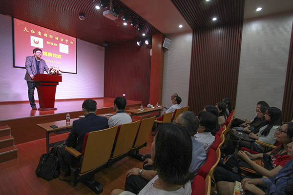 人文学院院长王臣申在揭牌仪式上致辞。他从中韩两国友好关系的历史、现状和未来讲起,谈到与创办于1949年的韩国历史名校庆熙大学合作,必将为我校的国际交流开辟新局面,带来新机遇。