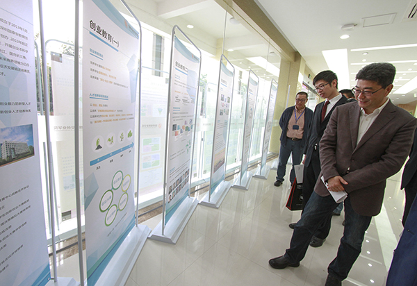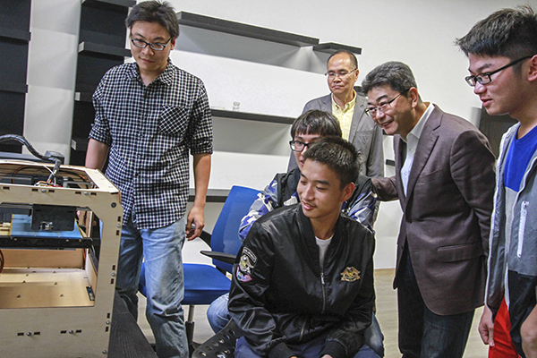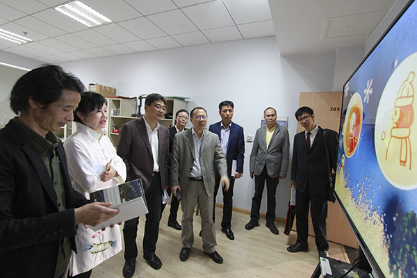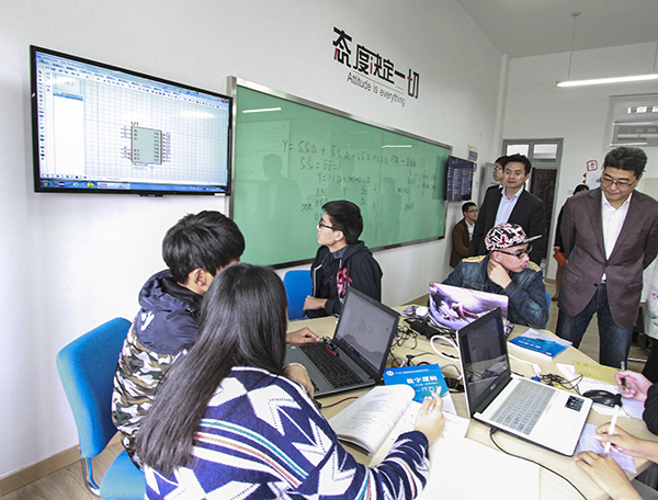 吴岩在校党委书记孙恵敏、副书记林长兴、副校长李羽陪同下,实地考察了信息工程学院、大宗商品商学院、国泰安创业学院等学院,以及翻转课堂示范区、动画工场、蓝源家族财富管理研究院等场所。