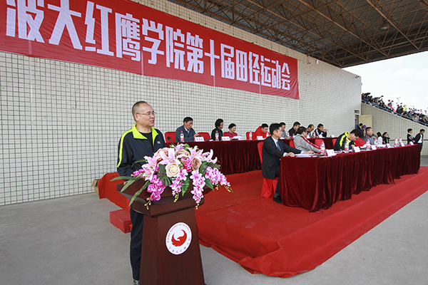 庄严的升旗仪式后,校党委副书记林长兴致开幕辞。他代表学校对本届运动会的胜利召开表示热烈祝贺,并具体介绍本届运动会的创新以及与以往运动会的不同之处。本届运动会在竞赛项目的设置上进行了创新和调整,将体育的趣味性、娱乐性和竞技性有机结合起来,人人参与比赛,让所有人都能体会到体育运动带来的无限乐趣。同时,还突出了对各分院团体操的评比,充分体现“生命因运动精彩,体育让梦想成真”的运动会宗旨,生动展现了我校校园体育文化的内涵和师生朝气蓬勃的精神风貌。最后,他代表组委会提出了三点要求:一是希望全体运动员遵守比赛规则,服从裁判,尊重对手;二是希望全体教练员、裁判员和工作人员恪守“公开、公平、公正”的竞赛准则,忠于职守、积极主动、一丝不苟地做好各项赛事组织工作;三是希望全体师生牢固树立“安全第一”的思想,把安全文化融入到运动会的各个环节中去,文明参赛、文明观赛,保持良好的大会秩序。