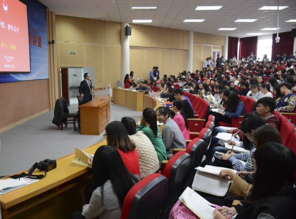 最后,王晓林带领同学们开展的一段“疯狂英语”秀将讲堂推向了高潮。他勉励大家,只要坚持对梦想的追求,成功一定会到来!