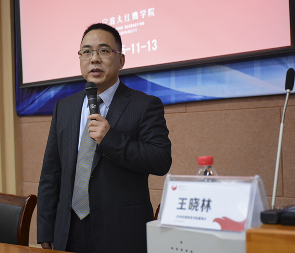 王晓林首先用他自己的英语学习经历和任教经历,鼓励在座同学设定自己的目标,通过不懈努力,向着自己的梦想不断迈进。他从语言的习得机制谈起,介绍了英语语言的学习方法,并辅以案例详细讲解了重复学习法、演讲重复论和背诵法等具体方法。此外,他还结合自己的经历向有志于成为英语教师的同学们传授经验与技巧。他认为,一名优秀的英语教师首先要学会听、说、读、写、展示、演讲的能力;其次,要积极补充课外资源去丰富自己的课堂,与学生一起探讨学习方法;最后还要对学生进行激励。他说,要成为一名好老师,要有强烈的责任心和满腔的激情,需要在教师之路上全力以赴,最重要的是要热爱学生。