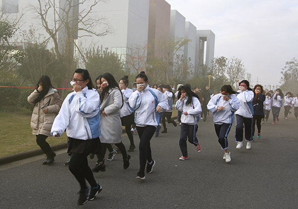 为了进一步增强师生安全防范意识,提高防火自救能力,普及火场逃生方法,12月8日下午,杭州湾校区举行了“安全和谐百日行”系列活动之大型消防疏散逃生演练活动。校领导林长兴、李向东,保卫处、学生处、基础学院、金贸学院、工商学院、财富学院等部门的相关教师到场观摩了此次活动。