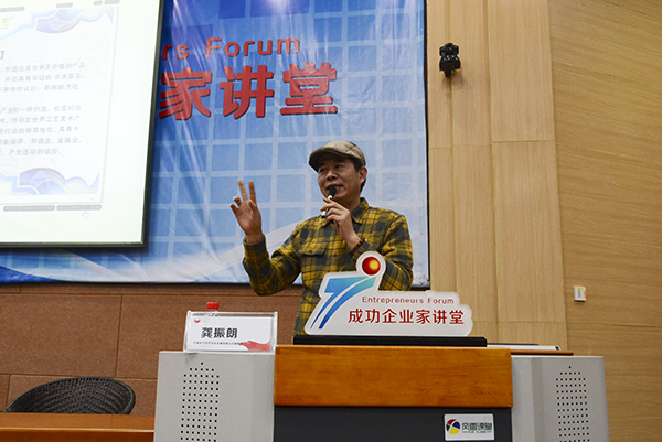 12月9日下午,我校“成功企业家讲堂”第五十讲在阶梯教室203室举行,宁波东方指艺文化发展有限公司董事长龚振朗应邀为我校师生作“创意成就梦想”的主题讲座。