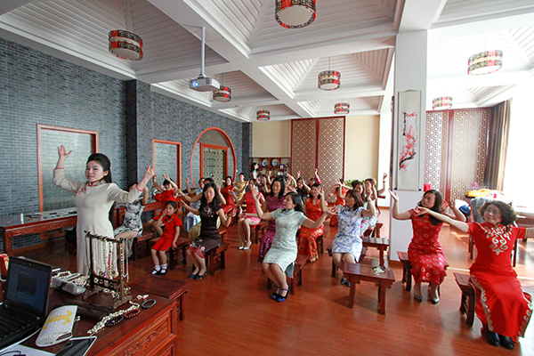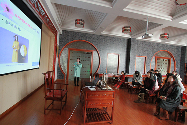 上午,由专业旗袍老师介绍旗袍文化的兴衰史、基本分类、每种类型的旗袍特点以及旗袍和饰品搭配等。随后,形体老师对女教职工如何摆造型进行培训,包括坐姿、站姿、手势、眼神等等,为下面“美丽定格”环节打好基础。所有培训活动结束后,专业化妆师对各位女教职工进行一对一的造型装扮。