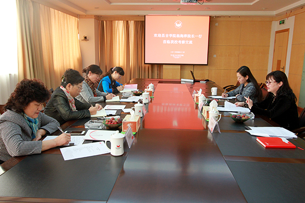两校领导正在交流(左二:新疆昌吉学院 杨海萍院长)