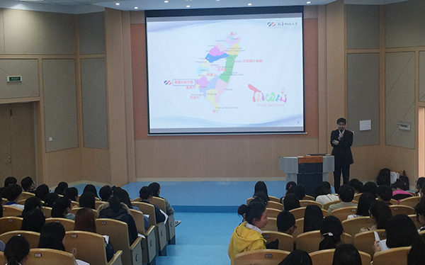 4月14日下午,台湾南台科技大学暑期夏令营宣讲会在阶梯教室201举行,该校国际暨两岸事务处处长王永鹏、视觉传达设计系主任黄国礼现场宣讲,吸引了200余名学生到场聆听。