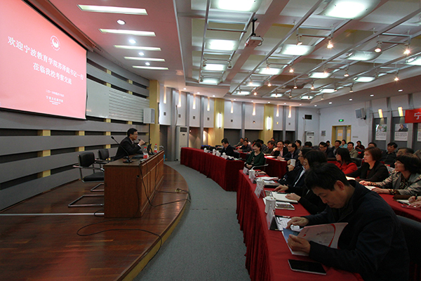 4月19日,宁波教育学院党委书记苏泽庭、院长周波率该校干部一行49人来校考察交流,主要调研我校在转型升级及管理方面的经验和特色做法。