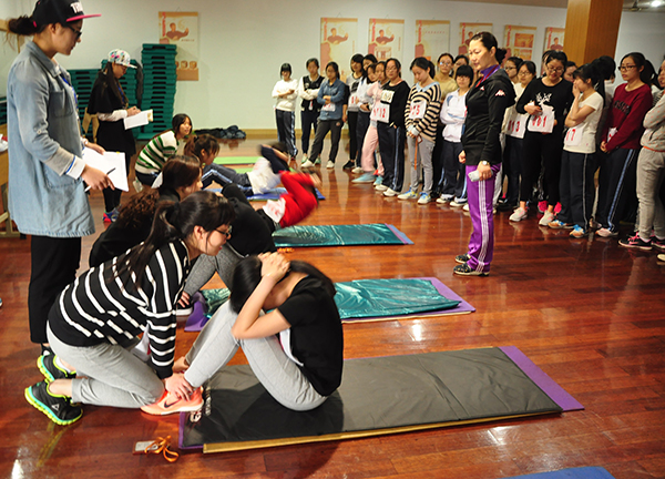 4月18日,浙江省教育厅高校体质测试抽查工作组对我校200名学生进行了抽测,金融贸易学院的100名女生和工商管理学院的100名男生被抽到检测。