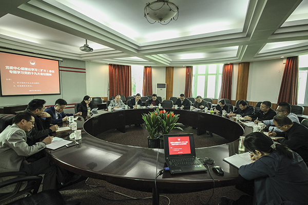 会议还就近期各基层党组织开展党的十九大精神学习宣传贯彻工作进行了安排,包括:二级党组织理论中心组组织党的十九大精神专题学习会、座谈会、研讨会;邀请专家举办党的十九大精神辅导讲座;各党支部以“三会一课”等形式学习习近平总书记所作的十九大报告和十九大通过的新党章;马克思主义学院要在课程教学中融入党的十九大精神内容;党务干部为学生开设学习贯彻党的十九大精神专题讲座;校各级业余党校、团校、干校在全体学生党员、入党积极分子、团学干部等学生骨干中开展党的十九大精神宣讲活动等。
