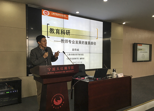 11月6日上午,《教育发展研究》杂志资深编辑、上海市教育科学研究院副研究员翁伟斌应邀来校作了题为“教育科研——教师专业发展的重要路径”的报告。校长助理蒋天颖主持报告会,全校从事高等教育管理研究的教师代表参加报告会。