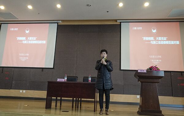 12月12日下午,我校杭州湾校区四楼报告厅里暖意融融,全国劳动模范、全国三八红旗手、省道德模范林萍做客马克思主义学院“立德大讲堂”,和师生一起分享她的大爱历程。