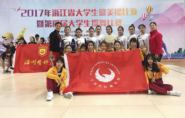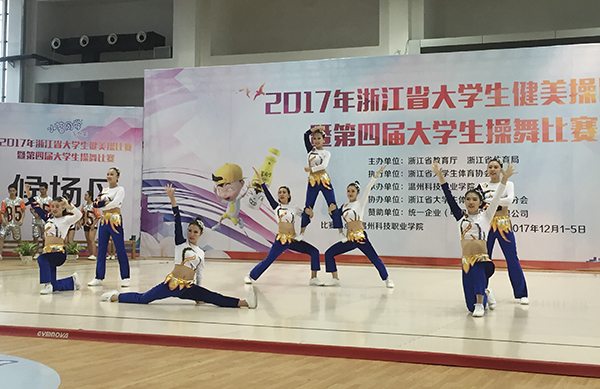 我校健美操队在2017年浙江省大学生健美操比赛中喜获甲组第一名