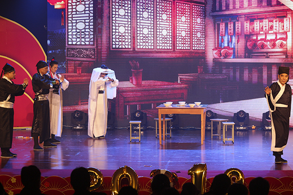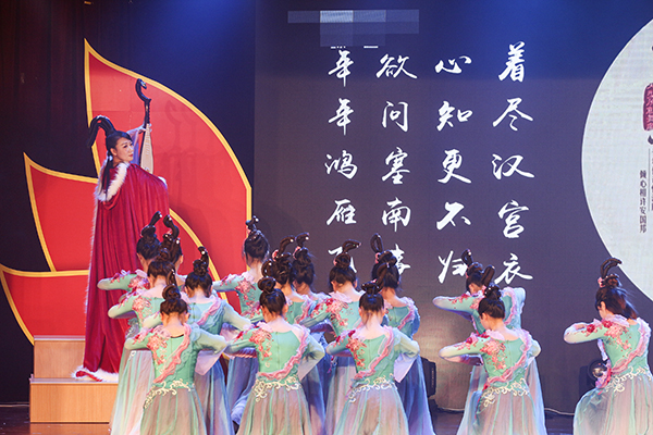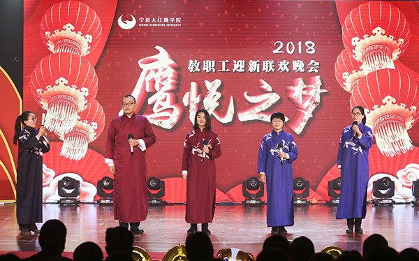随后,董彬彬老师带领校“欢沁民乐团”献上民乐合奏《喜洋洋》,丝竹声声,让晚会充满喜庆气息;朱媛、张维朋等老师的歌舞《LOVE LOVE LOVE》,歌调节奏轻快,舞蹈动感十足,赢得现场观众阵阵欢呼声;咿呀咿呀,夏柯、叶静等老师领着自家的“小红鹰”走到舞台之上,温情演绎家庭亲子秀《鹰为有你》;“麻辣教师”李晴和她的同事将课堂搬到晚会现场,带来爆笑的群口相声《好好好》;情景歌曲串烧《中东欧来客》别出心裁,重现我校人文艺术教育和国际化办学成果,宣琳、方科大等老师将异国风情与经典老歌相结合,引得观众连连赞叹;宗晓薇和校“星空舞蹈团”的同学们化身令人遥想的《昭君出塞》,舞蹈优美,引人入胜;赵嘉蒂、翁志积等辅导员老师表演的小品《手机综合症》诙谐幽默,而邵煜、李锂等专任教师参与演出的歌舞《别找我麻烦》也毫不逊色,轻盈灵动;卢桑雨、黄婷婷等老师的影视歌曲联唱婉转动听;秦双、孔素然等老师朗诵的《九月问答》深情款款,感人至深;李金平、贾鹏飞等老师变身江湖侠客,创意表演《武林外传》;芙蕖摇曳,陈玉越老师领舞的舞蹈《风月》展现了师生们的优雅姿态与满满活力,充满了对新年新生活的向往和憧憬。