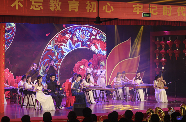 本场联欢晚会好戏连台,歌曲舞蹈、相声小品、情景朗诵、民乐演奏、武术表演、家庭亲子秀等多种文艺节目精彩纷呈,或清新活泼或优雅精致或如诗如画,充分展现了我校师生“不忘教育初心、牢记时代使命”的崇高追求和意气风发的精神风采。