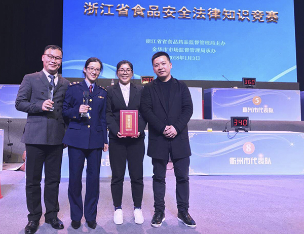 1月3日,由浙江省食品药品监管局主办的“2017浙江省食品安全法律知识竞赛”在金华市举行,我校金融贸易学院2015级国际经济与贸易专业倪艺同学作为宁波代表队队员,在本次竞赛上发挥出色,为宁波代表队获得全省三等奖作出了积极贡献。