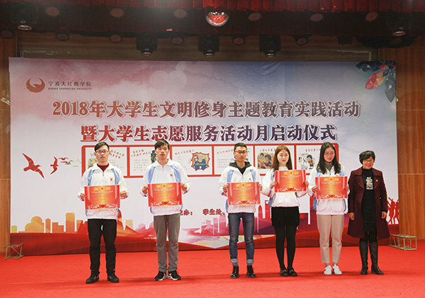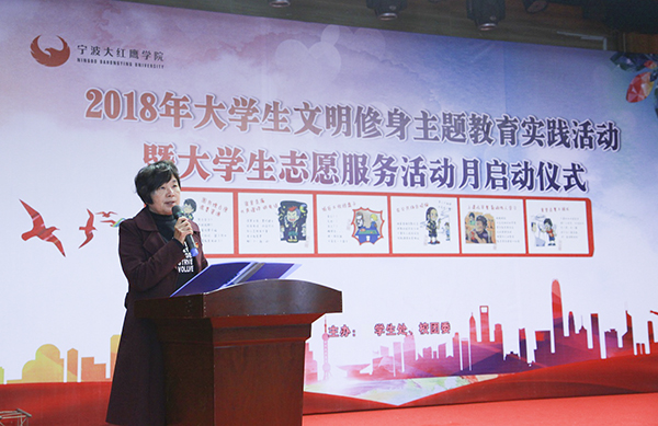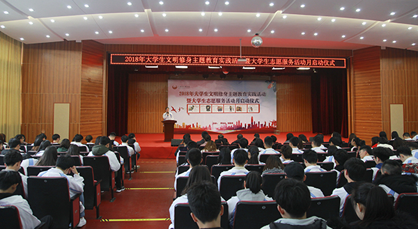 3月5日,我校2018年大学生文明修身主题教育实践活动暨大学生志愿服务活动月启动仪式在中区小剧场举行,校长助理何秋叶出席并讲话,相关部门负责人及各学院师生代表参加活动。