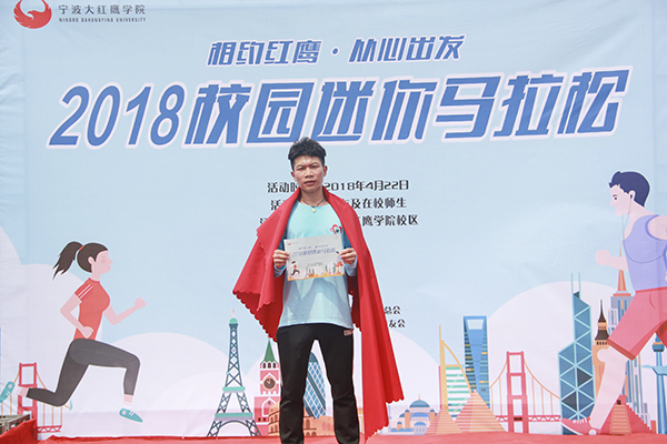 本次校园迷你马拉松活动的起、终点均设在南区运动场,跑道途经图书馆、体育馆、南北区商业街、社团活动广场、校训石、艺术楼等校内标志性建筑,充分展现了美丽文雅的校园风光和魅力无穷的红鹰文化。虽然天气闷热,但选手们用自己的坚持表达了他们对低碳生活的支持,对学校的无限热爱。比赛过程井然有序,大家都完成了近3公里的长跑,获得了有特殊意义的荣誉证书,收获满满。