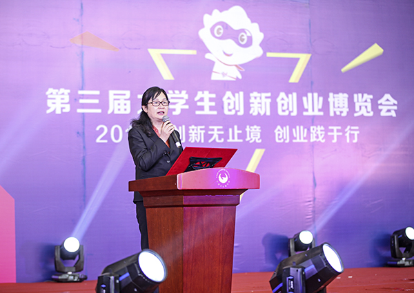 闭幕式上,孙惠敏作了讲话。她表示,经过精心培育,大学生创新创业博览会已成为我校参与人员最广、参与热情最高、活动项目最多、影响力最大的校园文化品牌。她说,在大学生创新创业博览会这一平台的助推辐射下,我校创新创业教育改革取得了明显成效。学校逐步构建形成了适应不同学生发展需求的多层次创新创业教育课程体系,相继成立以“商业模式实验室”为代表的一大批实践支持平台;学生在高层次创新创业竞赛中屡创佳绩,先后获得德国红点设计大赛红点奖、“挑战杯”竞赛国赛三等奖;涌现出孙国同、赏吉飞、张翔宇等一批学生创新创业明星;学校创新创业教育改革实践,也得到了各级教育主管部门和兄弟高校的一致认可,相关教改项目获省教学成果一等奖,学校还获评“全国民办高校创新创业教育示范学校”。她强调,创新无极限,创业无止境,学校创新创业教育改革永远在路上。为此,她提出三点希望,一是希望全体师生积极主动参与博览会活动,不断增强创业意识和能力,助力学校创新创业教育改革的整体推进。二是希望同学们能够将创新创业活动与所学专业紧密结合,继续提升作品的技术含量和创新水平,力争涌现出更多富有创意、更具创新性的优秀项目和成果。三是希望各单位以本次博览会为契机,认真总结成果经验,创新工作方式方法,打造更好的环境和平台,营造更加浓郁的创新创业氛围,将我校这一特色做法持续推广,力争在同行中产生更大的示范影响。